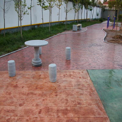 公园一角彩色压印混凝土…