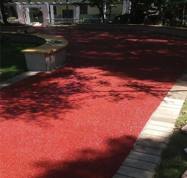 彩色透水地坪也称之为透水混凝土是由碎石、水泥、粘结料、颜料和水拌制而成的一种多孔轻质混凝土,它不含细骨料,由粗骨料表面包覆一薄层水泥浆相互粘而成孔穴均匀分布的蜂窝状结构,故具有透气、透水和重量轻的特点,作为环境负荷减少型混凝土,透水混凝土的研究开发越来越受到重视。